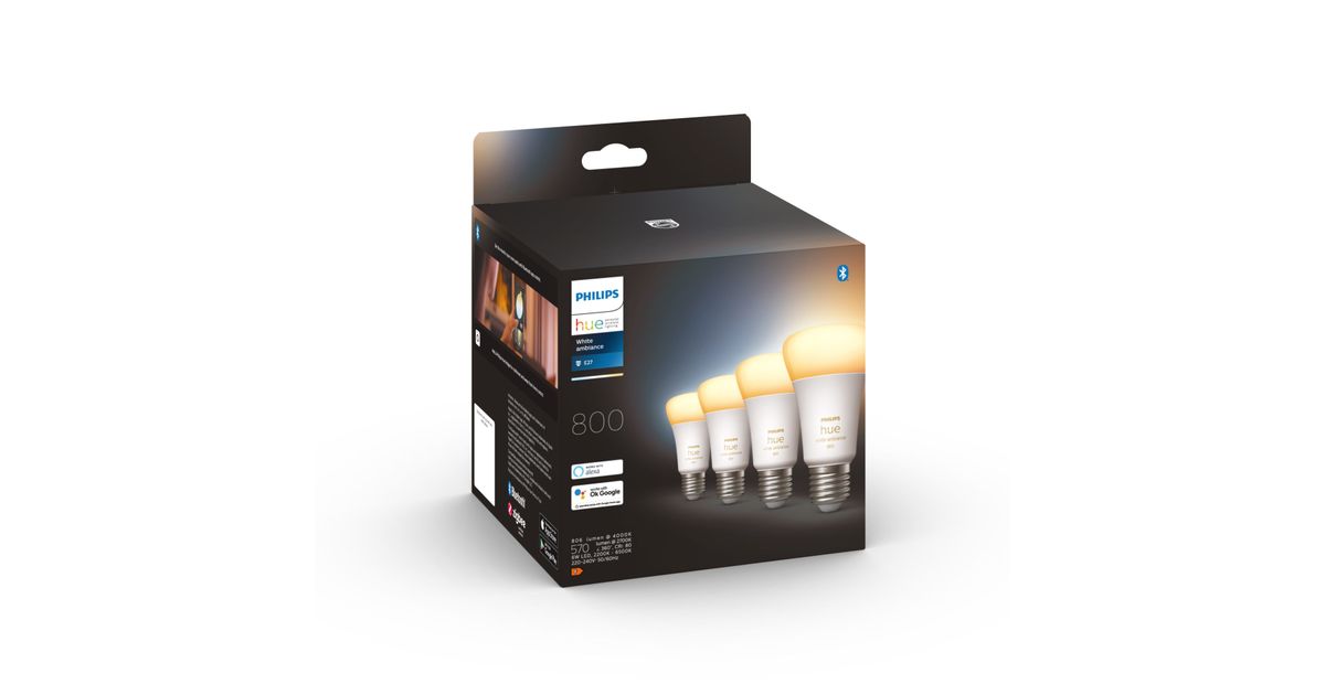Philips Hue White ambience 4-pack E27, Smart bulb, White, Bluetooth/Zigbee, LED, E27, Cool daylight, Warm white