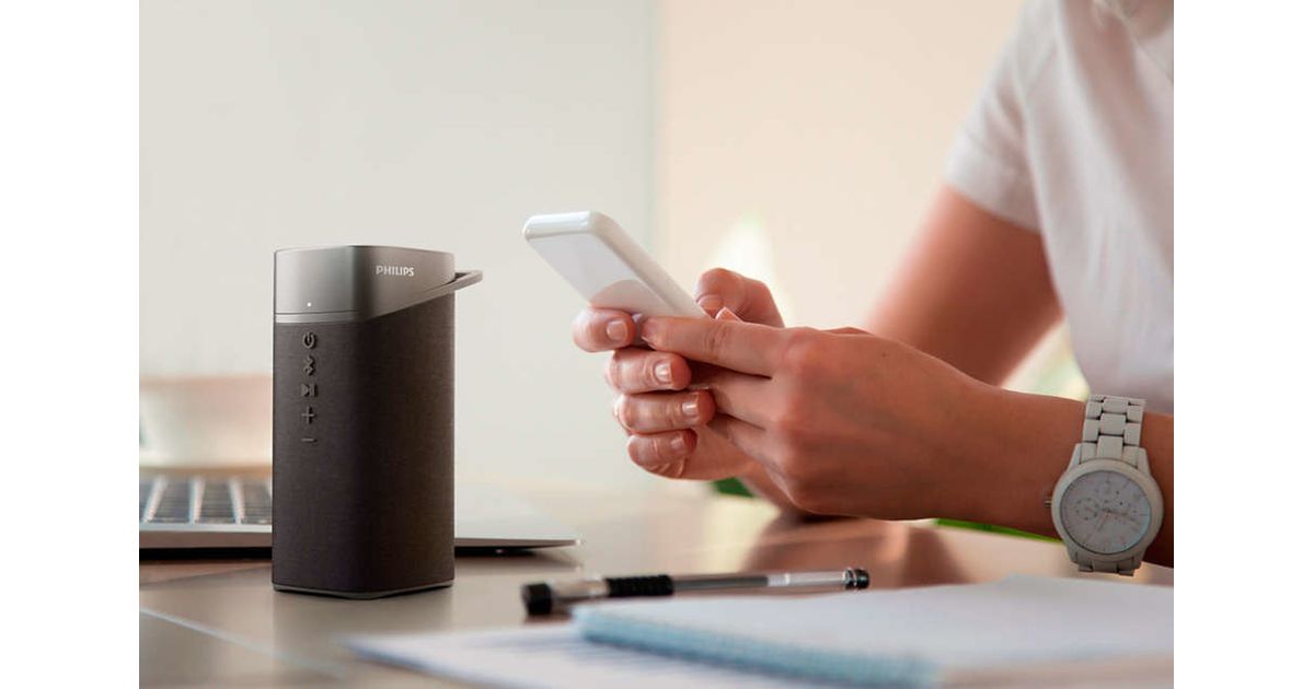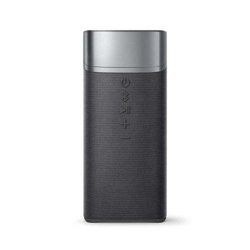 This simple yet striking Bluetooth speaker does music in style. Embossed buttons let you control playback, Bluetooth and more. The built-in mic lets you take hands-free calls and the carry handle makes it easy to move between rooms.