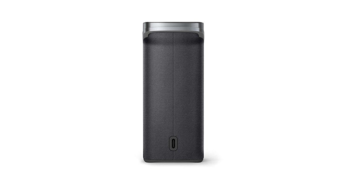 You get 10 hours of play time from a single charge and the wireless range is 20 m. Charging the speaker takes 2.5 hours via the included USB-C cable. Passive radiators deliver strong bass and the sound stays clear even at high volume.