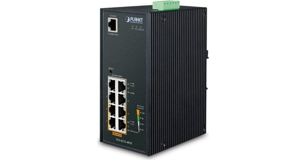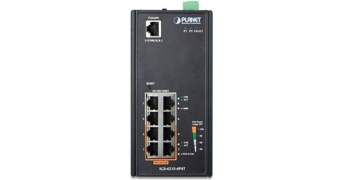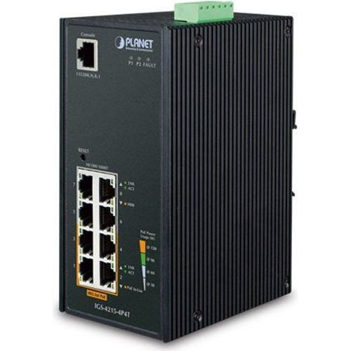 Designed to be installed in heavy industrial demanding environments, the IGS-4215-4P4T is the new generation of PLANET Industrial-grade, DIN-rail type L2/L4 Managed Gigabit PoE+ Switch featuring PLANET intelligent PoE functions to improve the availability of critical business applications. It provides IPv6/IPv4 dual stack management and built-in L2/L4 Gigabit switching engine along with 4 10/100/1000BASE-T ports featuring 30-watt 802.3at PoE+ and 4 additional Gigabit copper ports. The IGS-4215-4P4T is able to operate reliably, stably and quietly in any environment without affecting its performance. It comes with a total power budget of up to 144 watts for different kinds of PoE applications and operating temperature ranging from -40 to 75 degrees C in a rugged IP30 metal housing.