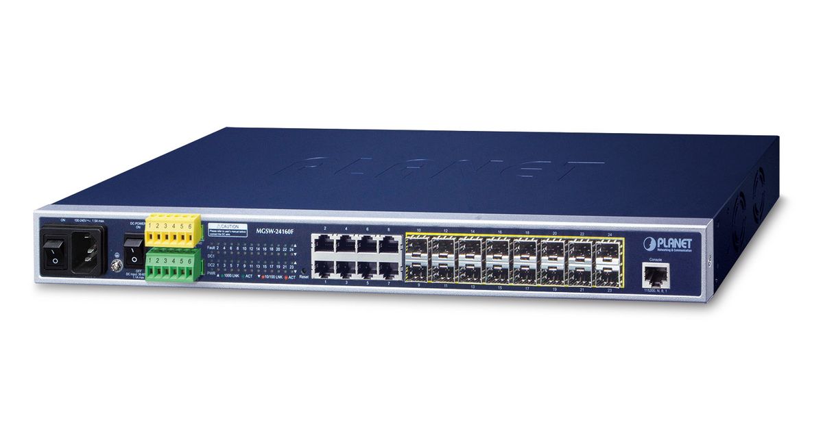 PLANET MGSW-24160F, Managed, L2+, Gigabit Ethernet (10/100/1000), Power over Ethernet (PoE), Rack mounting, 1U