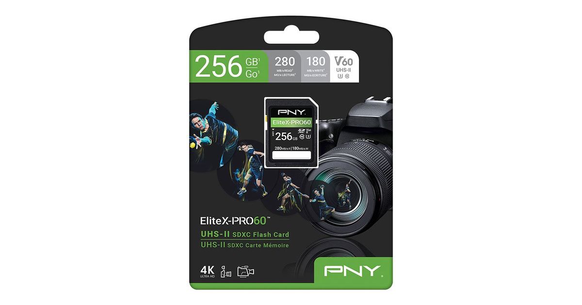 PNY EliteX-PRO60, 256 GB, SDXC, Class 10, UHS-II, 280 MB/s, 180 MB/s