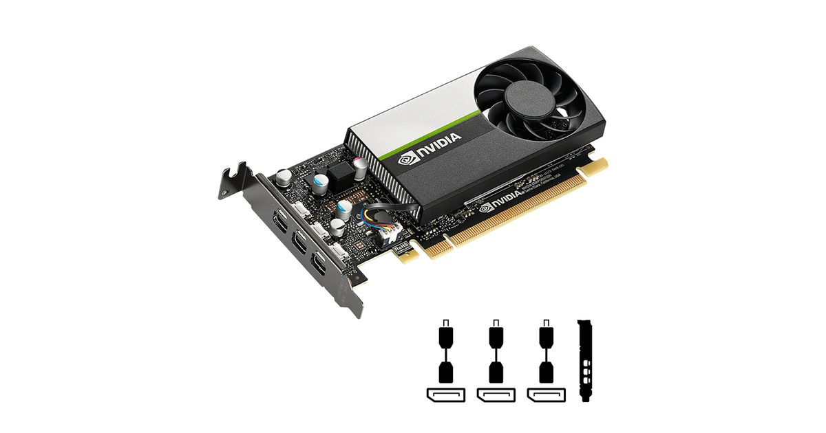 - Drives up to three 4K displays directly from onboard mini-DisplayPort 1.4 patented latching connectors (up to 4 displays using MST). Creates expansive visual environments with up to 12 total displays, using up to three NVIDIA T400 cards per system.