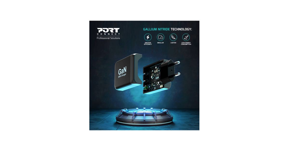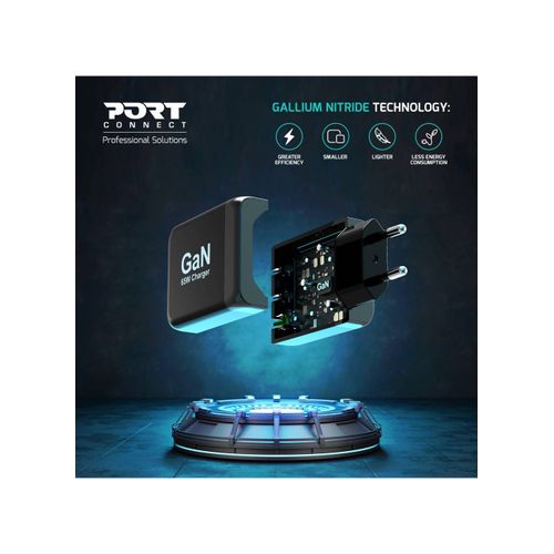 • Gallium Nitride (GaN) technology: more efficient, smaller, lighter and less energy consuming than traditional silicon chargers