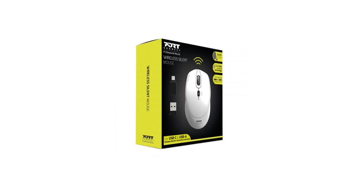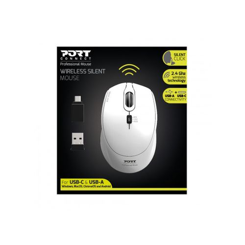Port Designs 900714, Ambidextrous, RF Wireless+USB Type-C, 1600 DPI, White