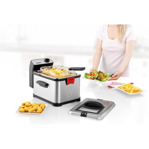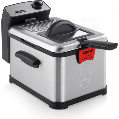 Reasons to choose the Princess Superior Deep Fat Fryer:Provide your entire family with chips and snacks thanks to the 3 litres volumeThe cool zone prevents crumbs from burning and the filter keeps the oil much cleanerFrying made safe thanks to the safety oil filter that prevents splattering and fizzingEasy to clean thanks to the dishwasher safe partsExtremely effective 3200 Watt power so the fryer heats up very quickly