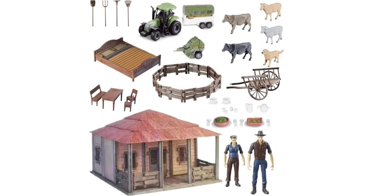• ProNice SET FARM FARMER HOUSEHOUSE ANIMALS TRACTOR WITH SEMI-TRAILER TOOLS