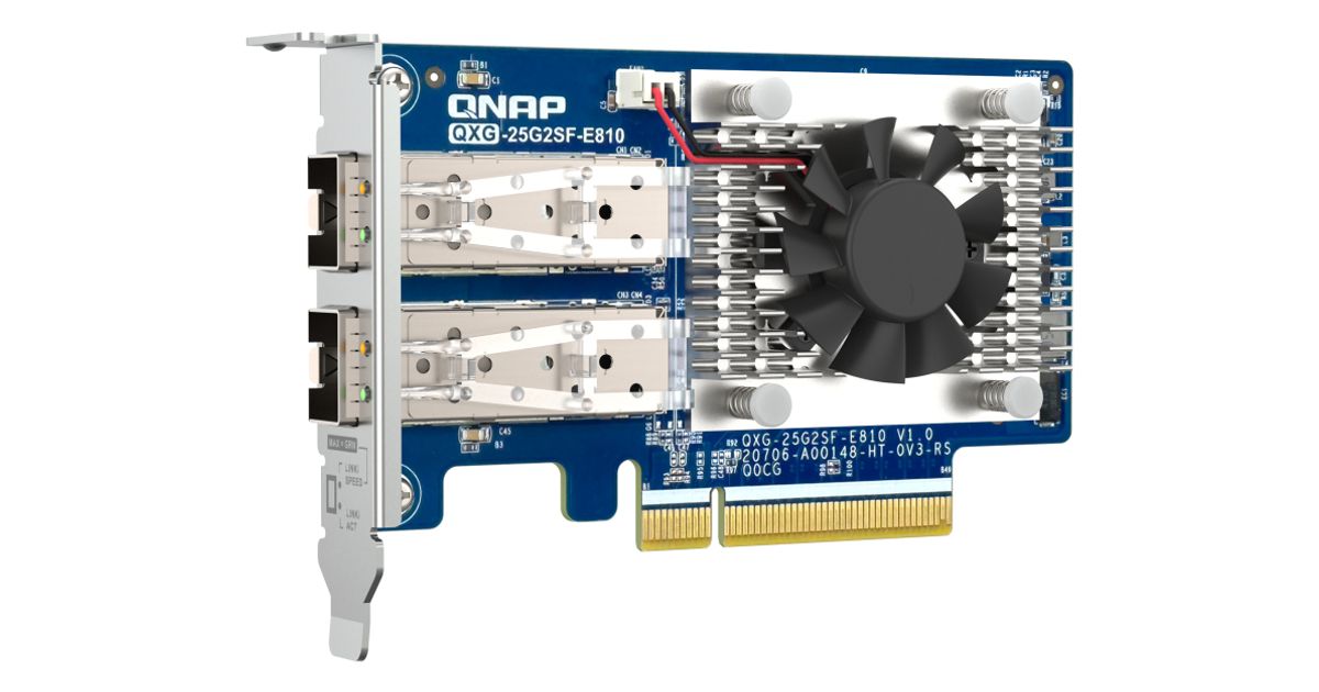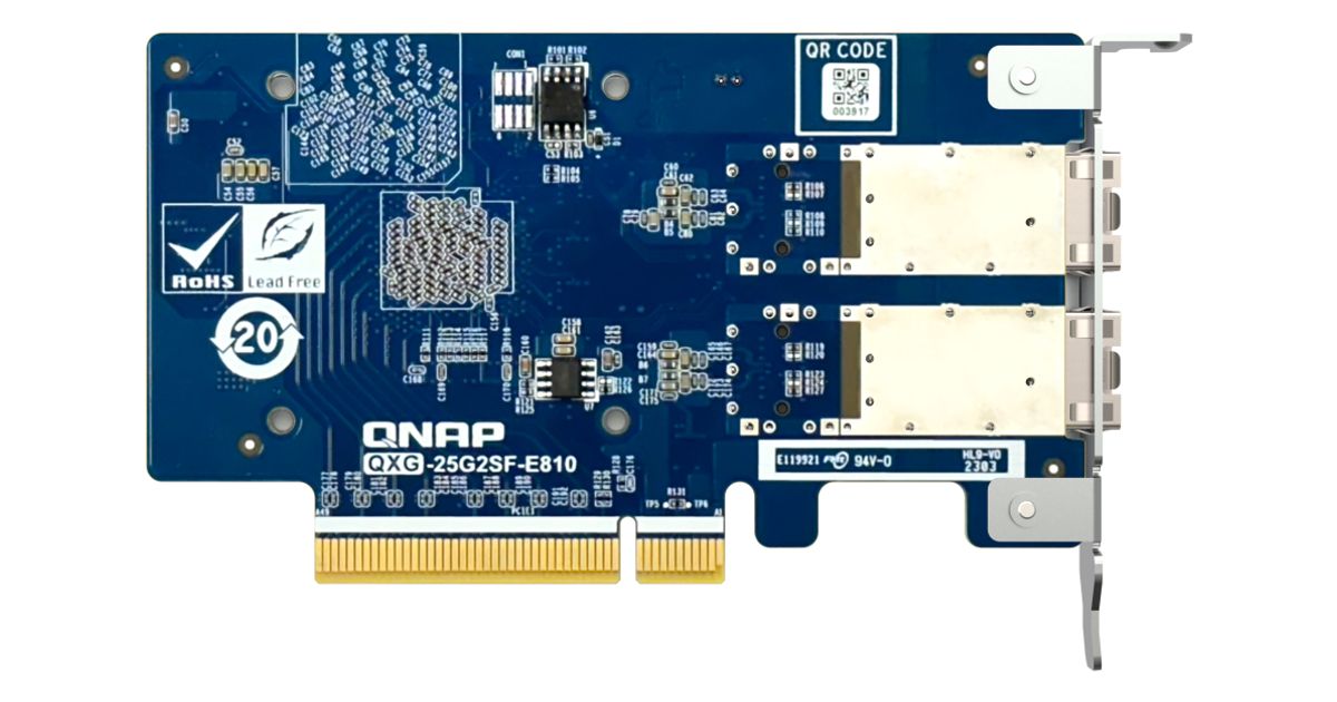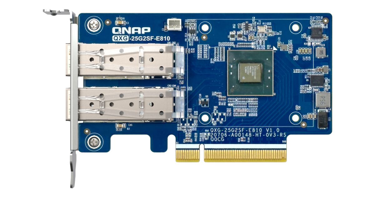 QNAP provides various NAS systems that come with built-in 25GbE ports. You can add more 25GbE connections by installing the QXG-25G2SF-E810 PCIe network cards, and enable SMB Multichannel to enjoy 50Gb/s (or higher) network speeds with connected client devices, giving you a flexible and cost-effective high-speed storage solution.