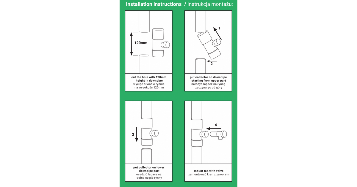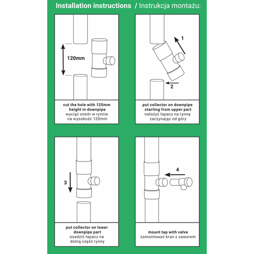 - the collector can be used for PVC and metal downpipes with a diameter of 90 mm