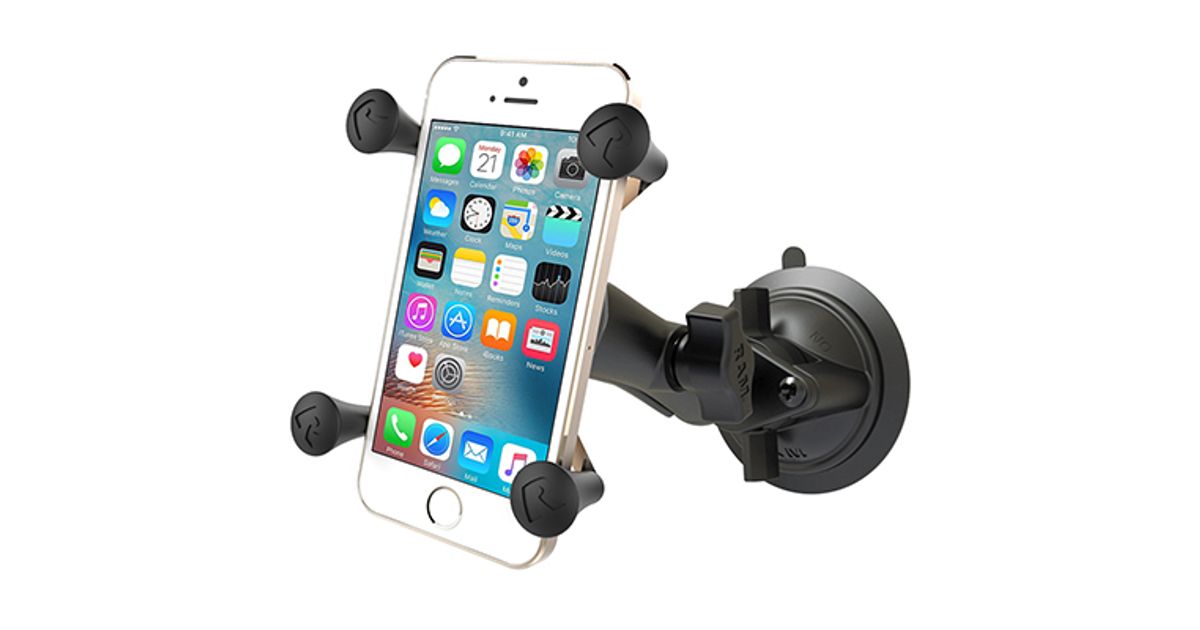 The RAM-B-166-UN7U consists of a 3.3" diameter suction cup twist lock base, standard length double socket arm and universal spring loaded X-Grip cradle for cell phones. The suction cup, twist lock base is designed to have a strong hold on glass and non-porous plastic surfaces. The included X-Grip cradle has a clean and clever four leg design that sports great holding power without hiding your phone behind foam pads and plastic. The spring loaded X-Grip cradle expands and contracts, allowing for a perfect custom fit of your cell phone. The perfect complement to the modern sleek interior of today's vehicles, the RAM X-Grip is the cell phone cradle evolved. The X-Grip includes a device tether recommended for outdoor applications. The cradle is compatible with handheld devices that will fit the dimensions listed below. It is important to verify the dimensions of your handheld device with a case/sleeve/skin when determining the overall size.