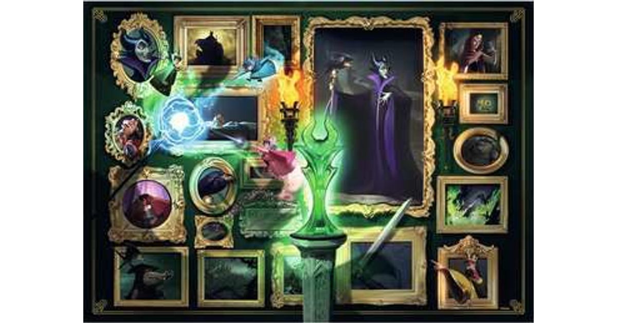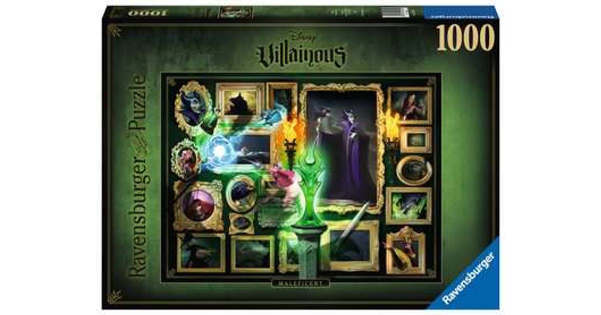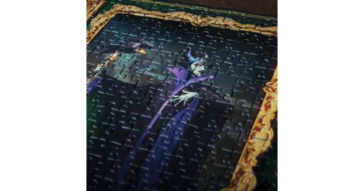 This magical puzzle stars the wicked Maleficent, and echoes the game elements and style of the hit game Villainous. Discover a dramatic art gallery filled with key Sleeping Beauty characters including fairies Flora, Fauna and Merryweather, King Stephen, King Hubert, Diablo, Aurora, Prince Philip and, of course, Maleficent herself. High quality 1000 piece cardboard jigsaw puzzle. The finished puzzle measures 70 x 50cm when complete. Suitable for ages 12 years and up. Made from strong premium grade cardboard, with linen finish print to minimise glare on puzzle image.