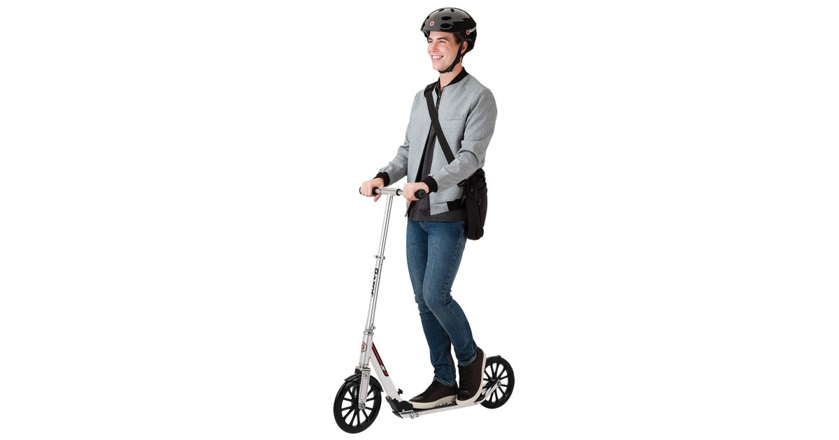 You’re never too tall to ride! The Razor A6 kick scooter was designed and constructed with taller riders in mind. No more hunching over, the A6 features handlebars that adjust to an incredible height of 42” (1067 mm), an extra-long deck with additional foot room, and ultra-sized, ultra-sturdy 10” (254 mm) urethane wheels. Built to last with a super-strong, folding aluminum frame and new, patent-pending, anti-rattle technology, the A6 offers the smoothest ride for taller riders.