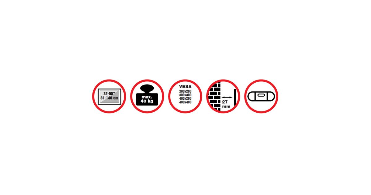 Easy to use and install, reflecta PLANO Slim 55-4040 is designed to fit any 32"-55" Flat Panel TV up to 40kg. This fixed-position mount is perfect for viewing your TV at eye level. Integrated bubble level assures easy installation. Compatible with VESA up to 400x400.