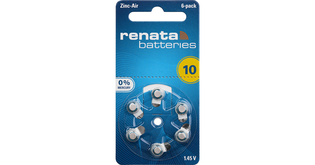 Renata Hearing Aid Pr70 Button Cell Za 10 Zinc Air 105 Mah 1.4 V 6 Pc(S)