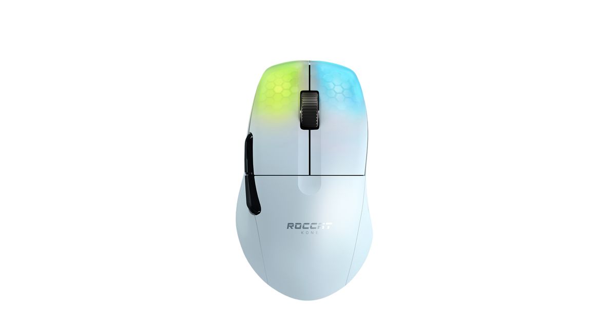 Meet the ROCCAT® Kone Pro Air Ergonomic Optical Performance Wireless Gaming Mouse with RGB Lighting, the first ever wireless Kone. Perfected through 14 years of craftmanship, at just 75g the Kone Pro Air is lightweight, comfortable and advanced. It utilizes the Titan Switch Optical, AIMO RGB lighting, our 19K DPI Owl-Eye Sensor, USB-C PhantomFlex™ charging cable and heat-treated glides.