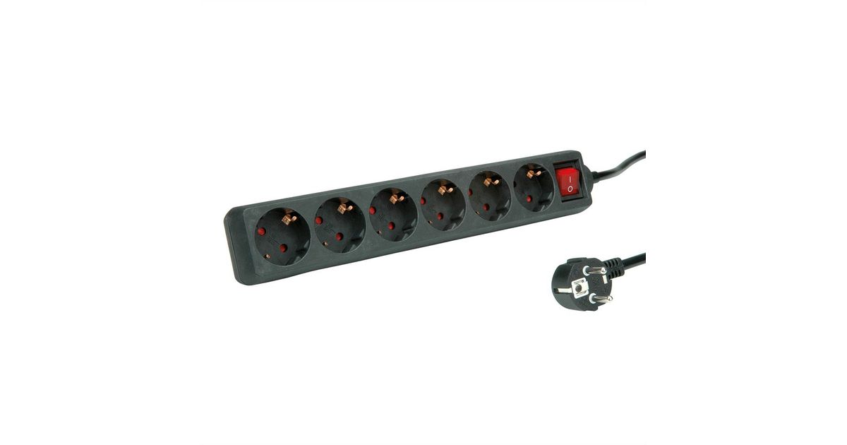 ROLINE 19.07.1077, 10 m, 6 AC outlet(s), Indoor, Plastic, Black, 250 V