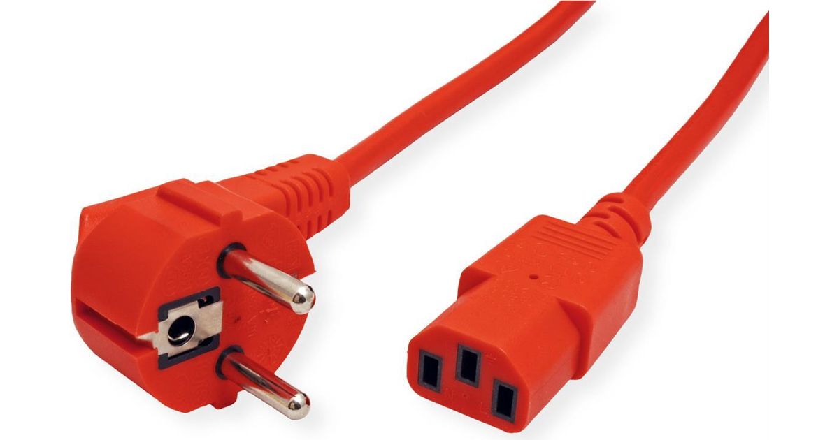 ROLINE - Stromkabel - CEE 7/7 (M) gewinkelt bis IEC 60320 C13 gerade - Wechselstrom 250 V - 10 A - 1.8 m - Rot - Deutschland (19.08.1010)
