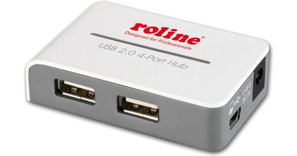 ROLINE USB 2.0 Hub "Black and White", 4 Ports, with Power Supply, USB 2.0, USB 2.0, Grey, White, Plastic, 0.5 m, 65 mm