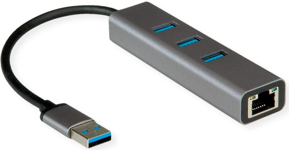 ROLINE USB3.2 Gen1 Gigabit Eth. Adapt.+Hub 3x - Digital/Daten - Netzwerk (12.02.1112)