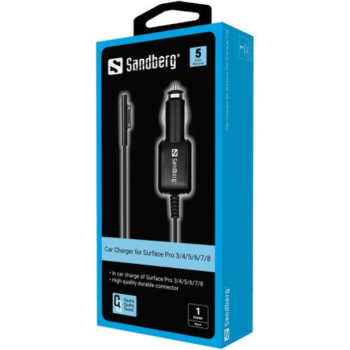 Sandberg Car Charger Surface Pro 3-8, Auto, Cigar lighter, 12 V, 1 m, Black