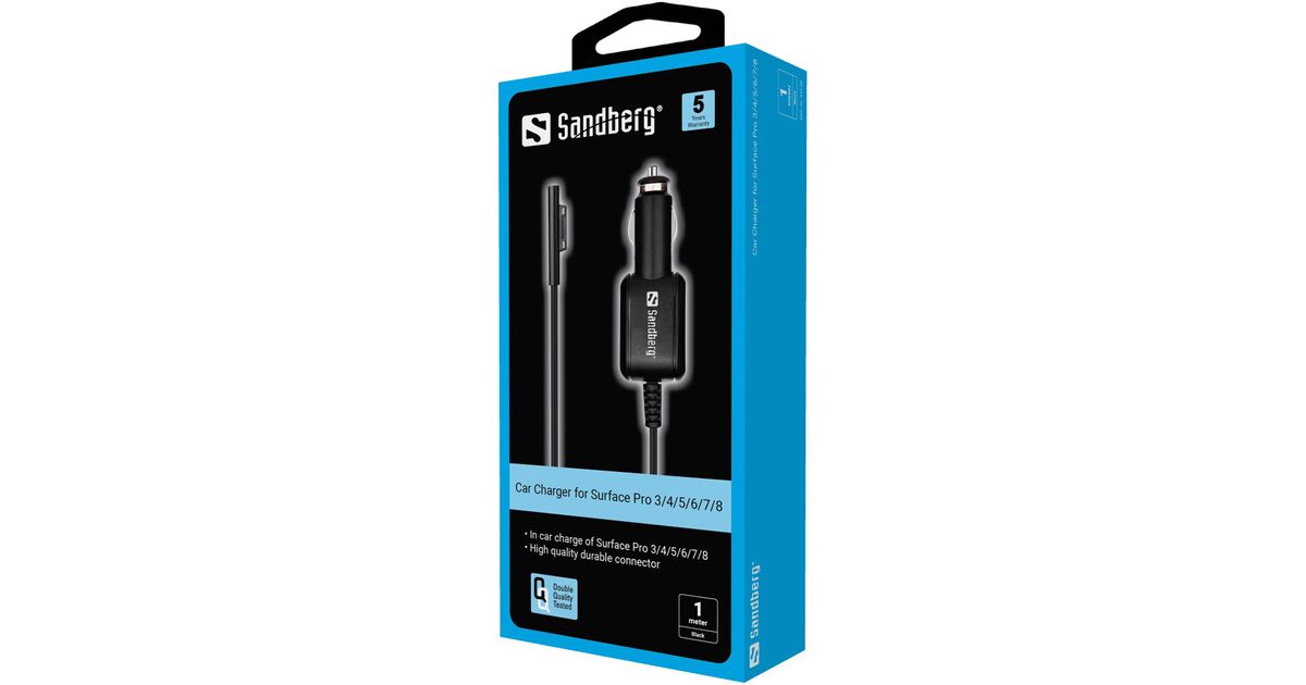 With the Sandberg Car charger Surface Pro 3/4/5/6/7/8, you will always have a charging cable available in your car for your Surface Pro 3/4/5/6/7/8.