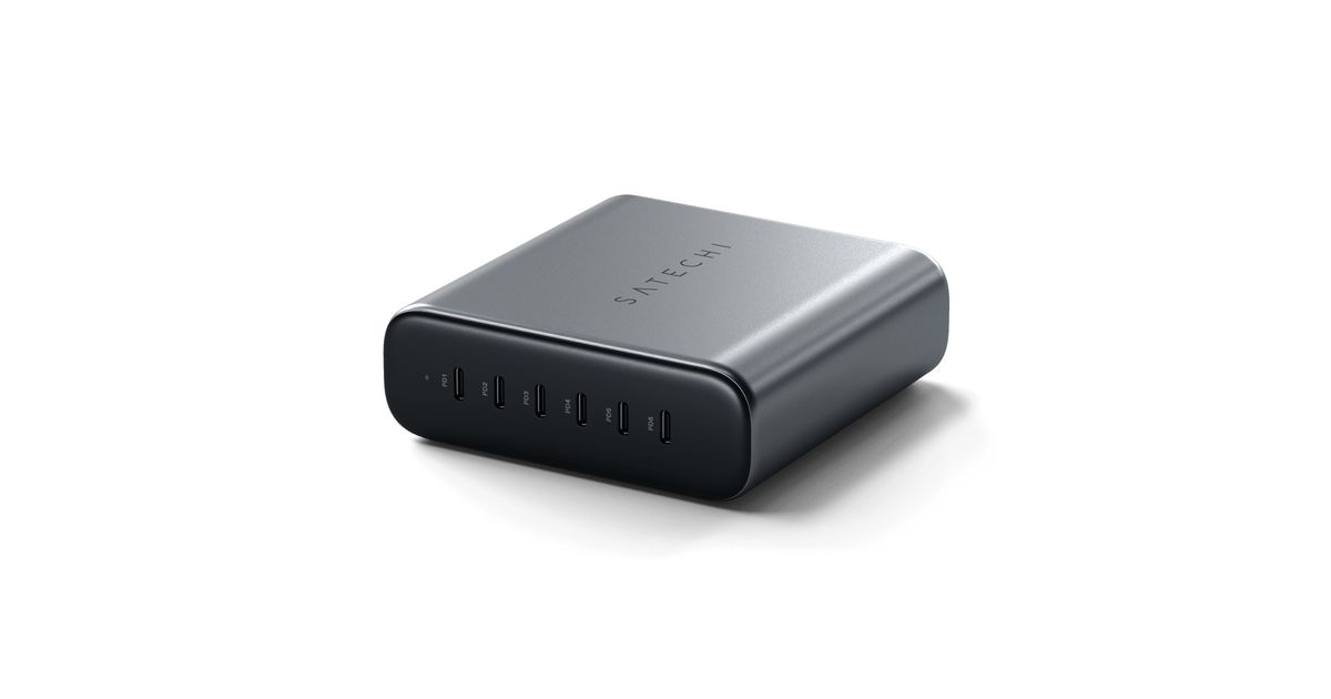 Level up with the 200W 6-Port USB-C PD GaN Charger by Satechi. This elegant yet powerful charger allows you to charge up to 6 devices simultaneously driven by industry-leading GaN technology for a fast, reliable, and safe charge. By swapping out silicon for gallium nitride (GaN), we’ve reduced the size of our chargers without compromising power. Equipped with 6 USB-C PD ports to support multiple power configurations up to 200W, this charger is the perfect solution to power up your power-hungry devices.