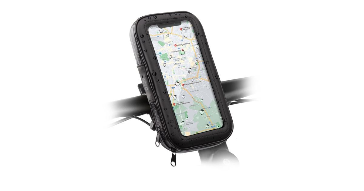 This waterproof rubber case has a plastic film layer that protects your smartphone from splashing while letting you answer calls or use the touch screen. This way, you can get around carefree on your bicycle, E-Bike or scooter even if it starts to rain.