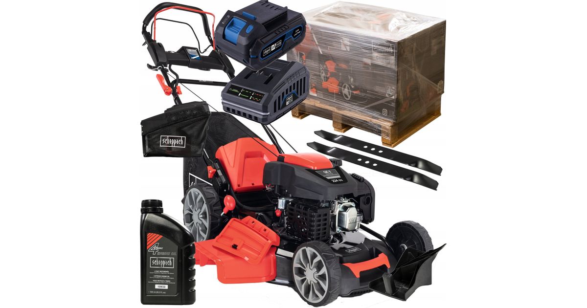 Scheppach MS225-56E petrol lawn mower electrostart + oil + knife