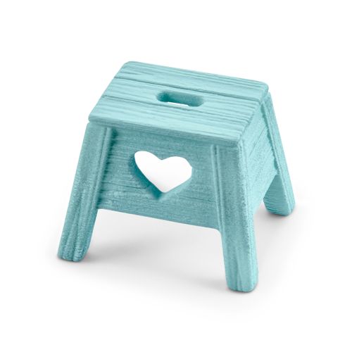 Mia needs to stand on a stool whenever she mounts her pony Spotty.
