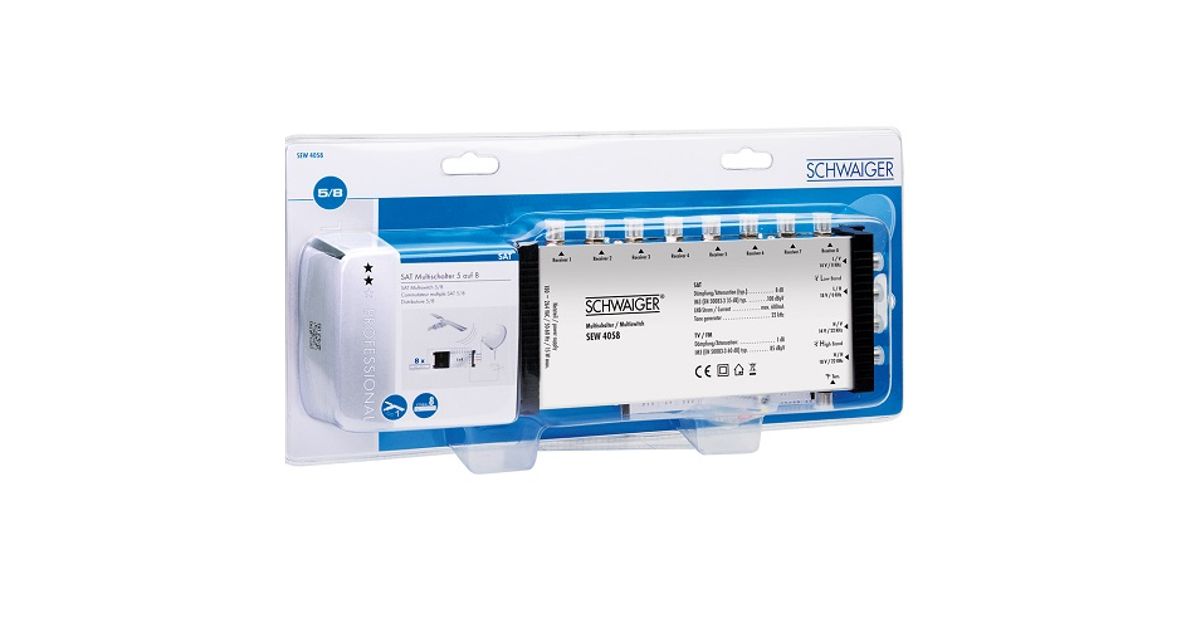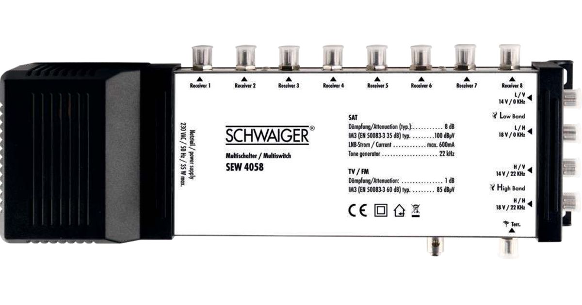 This SCHWAIGER multi switch is used to distribute digital signals of 1 satellite position to up to 8 subscribers. You can feed signals from a Quad or Quattro LNB as well as terrestrial signals. All subscribers can make use of the entire range of programmes independently from one another.