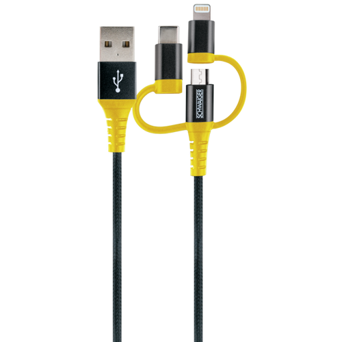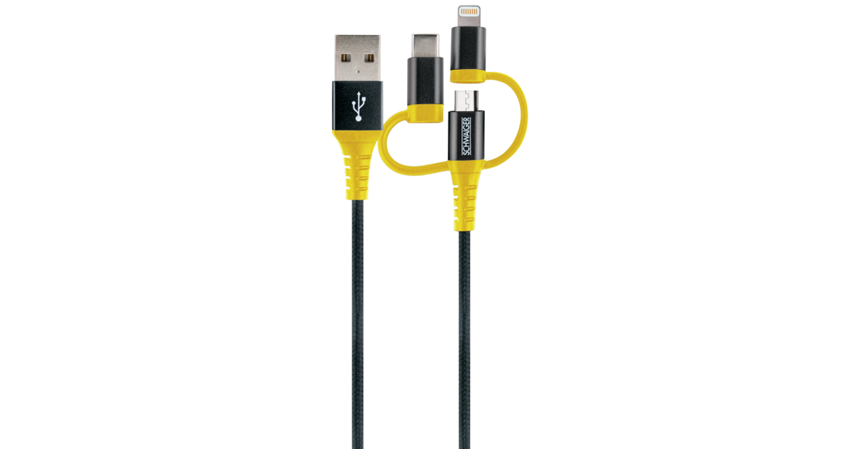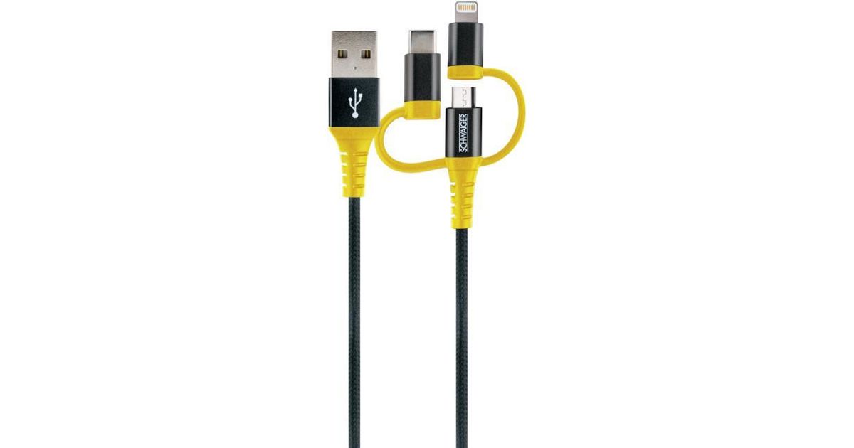 Schwaiger WKUU310 511, 1.2 m, USB A, Micro-USB B/Lightning, 480 Mbit/s, Black, Yellow