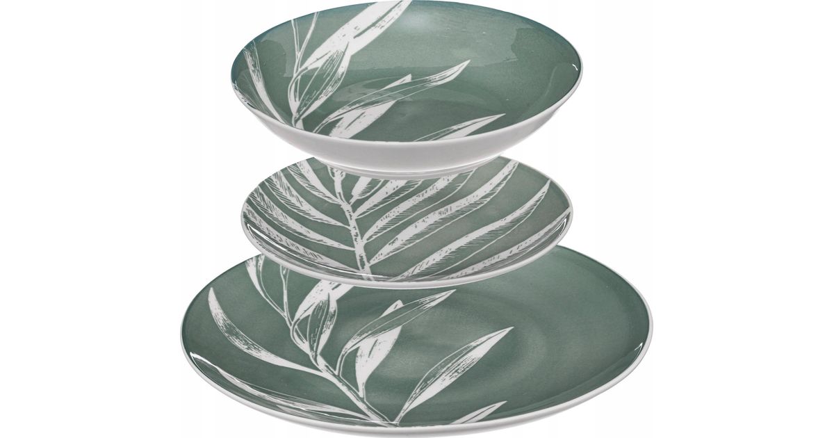 Secret de Gourmet Porcelain tableware for 6 people, leaf pattern, 18 elements