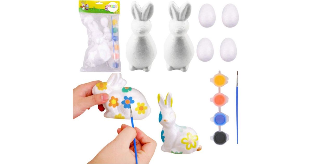 • Set for painting foamed polystyrene decorations 2 hares 4 eggs lean toys paint