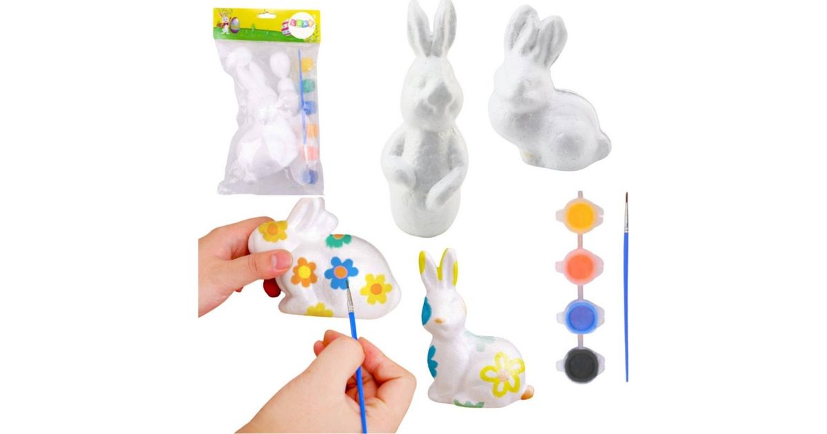 • Set of painting polystyrene decorations 4 hares of paint brush Lean Toys