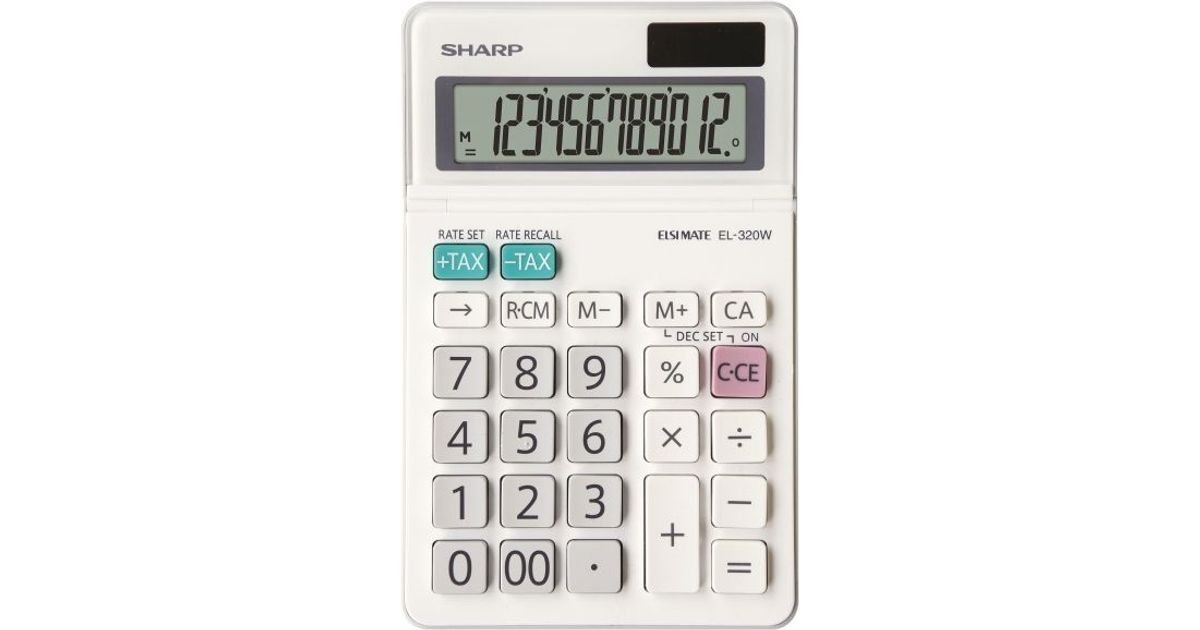 Sharp EL320WB, Desktop, Basic, 12 digits, Display tilting, Battery/Solar, White