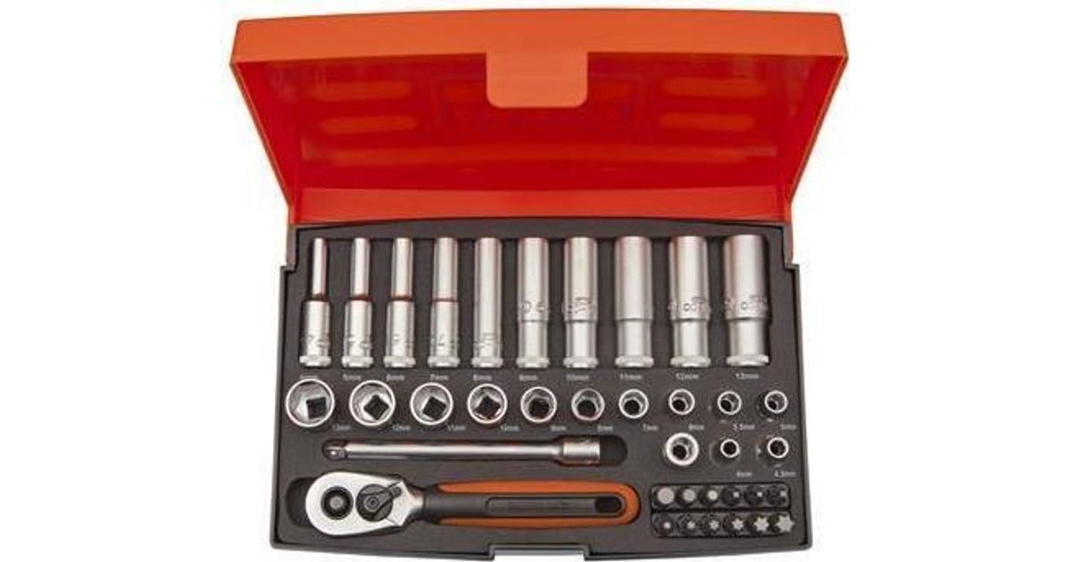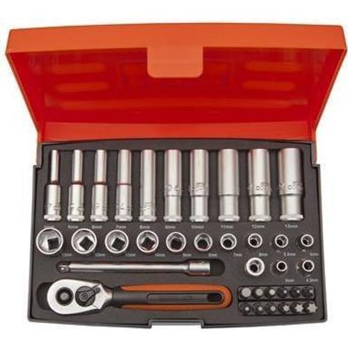 Short and long sockets set 4-13mm + bits PH,PZ,HEX,TORX 37 pcs 1/4"