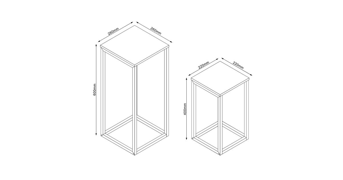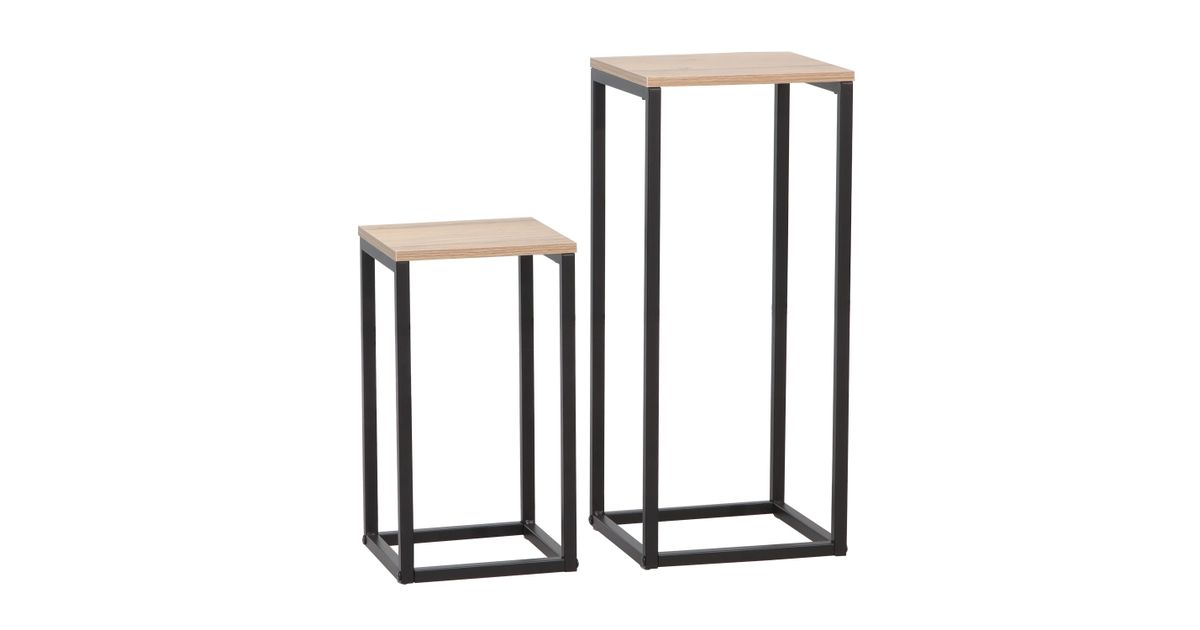 Side table HANNES 2pcs set 26x26xH60cm, 22x22xH40cm, rustic melamine.