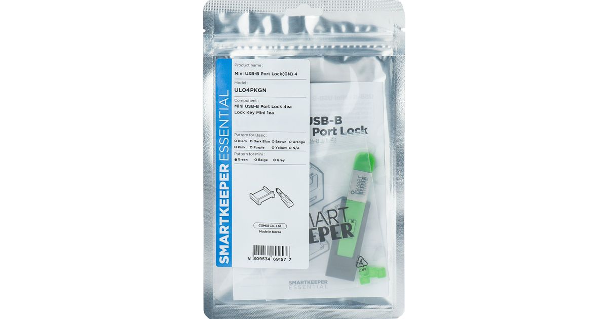 Smartkeeper UL04PKGN Schnittstellenblockierung Schnittstellenblockierung + Schlüssel Mini-USB Type-B Grün Kunststoff 1 Stück(e) (UL04PKGN)
