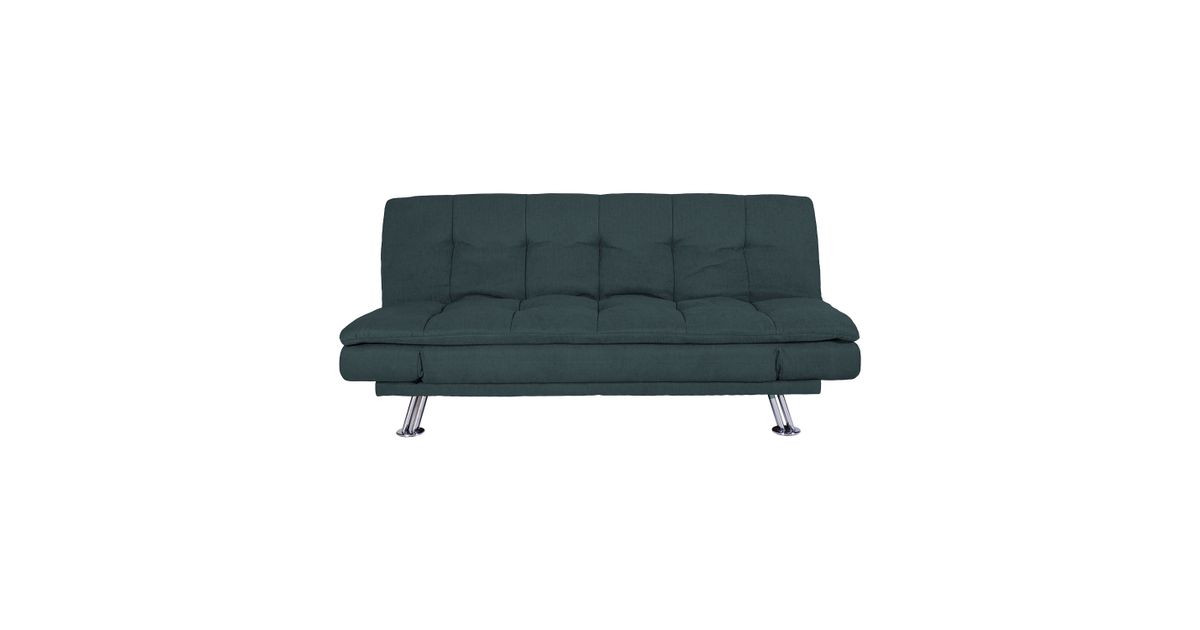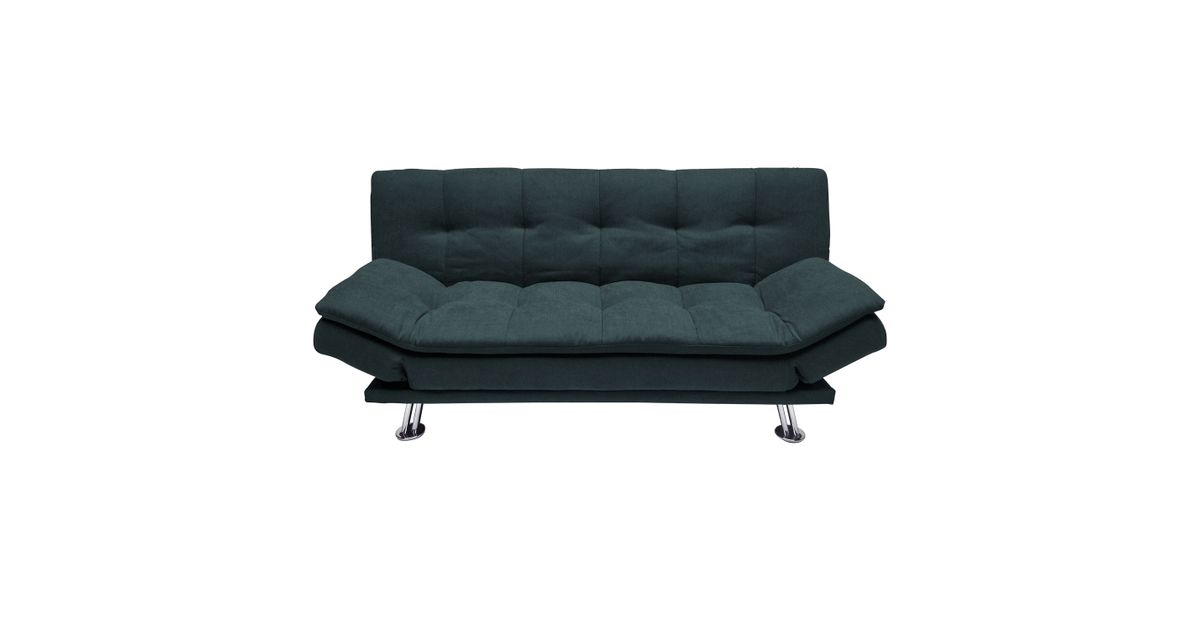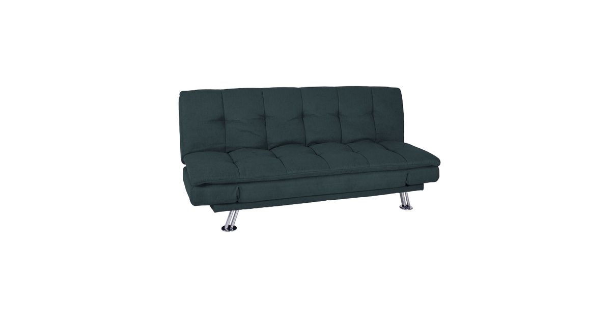 Sofa bed ROXY dark grey. Cover material: 100% polyester fabric. Frame and suspension: wood, plywood, zig-zag springs. Upholstery: polyurethane foam. The legs are made of metal. The sofa has a click-clack mechanism, which makes it easy to open and use as a sleeping space. The overall dimensions of the sofa are 189x88xH91cm. The dimensions of the sofa bed when opened are 190x106xH40cm.