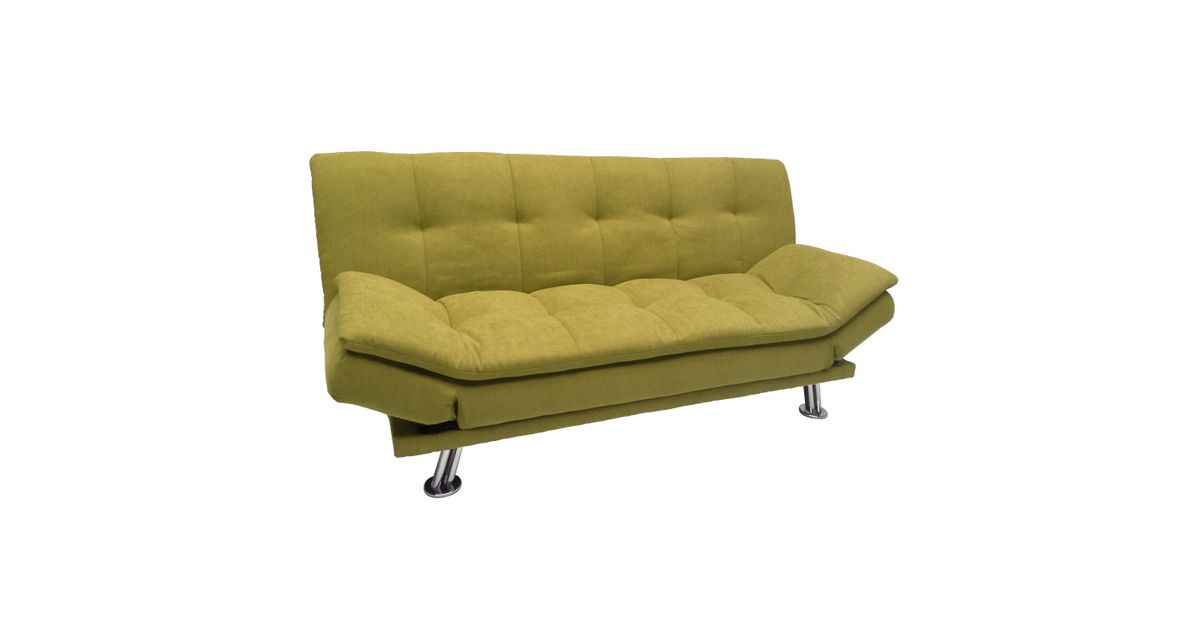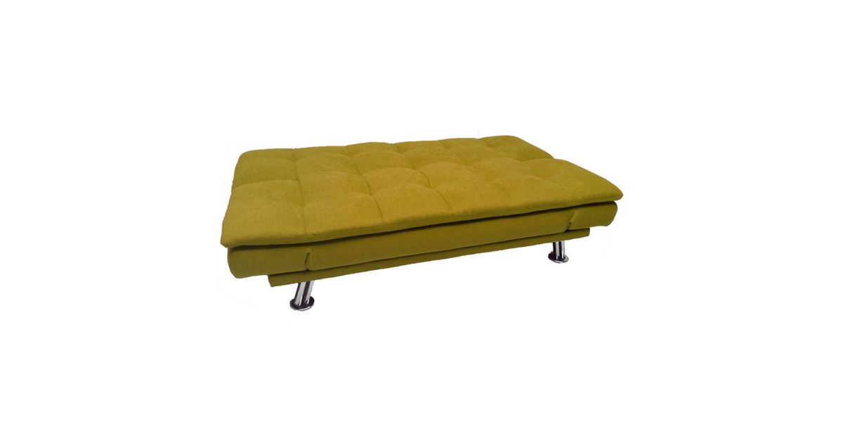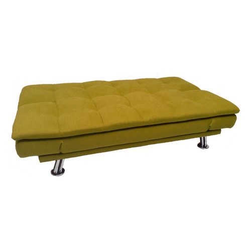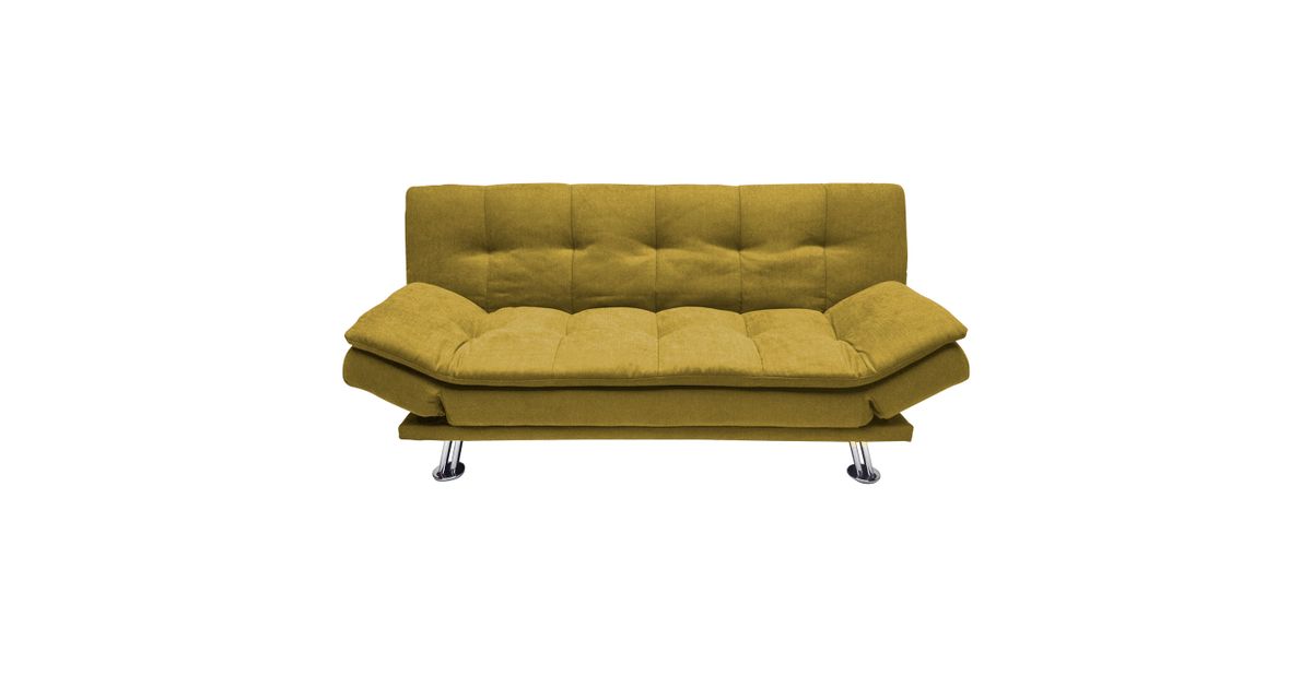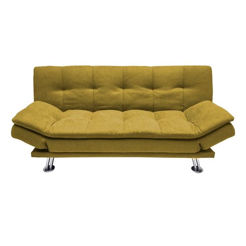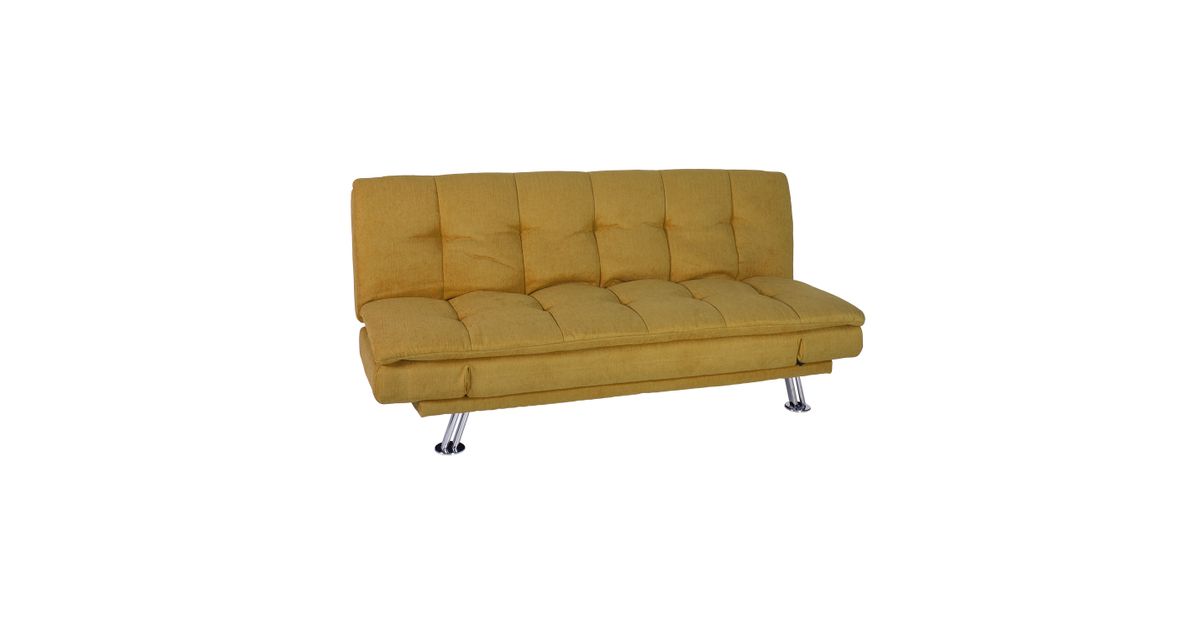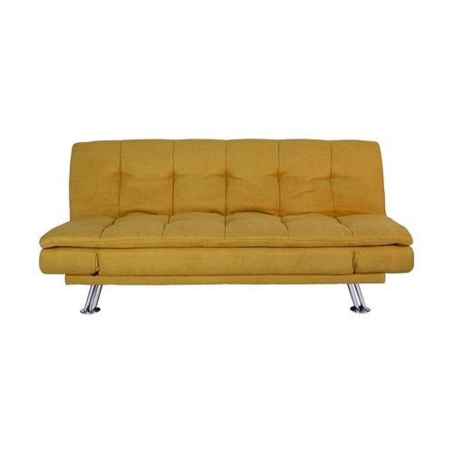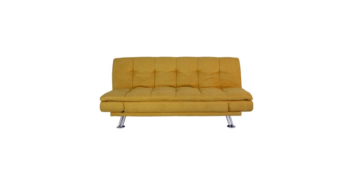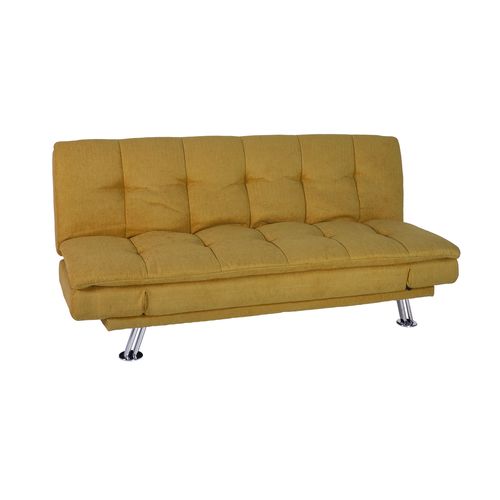 Sofa bed ROXY yellow. Cover material: 100% polyester fabric. Frame and suspension: wood, plywood, zig-zag springs. Upholstery: polyurethane foam. The legs are made of metal. The sofa has a click-clack mechanism, which makes it easy to open and use as a sleeping space. The overall dimensions of the sofa are 189x88xH91cm. The dimensions of the sofa bed when opened are 190x106xH40cm.