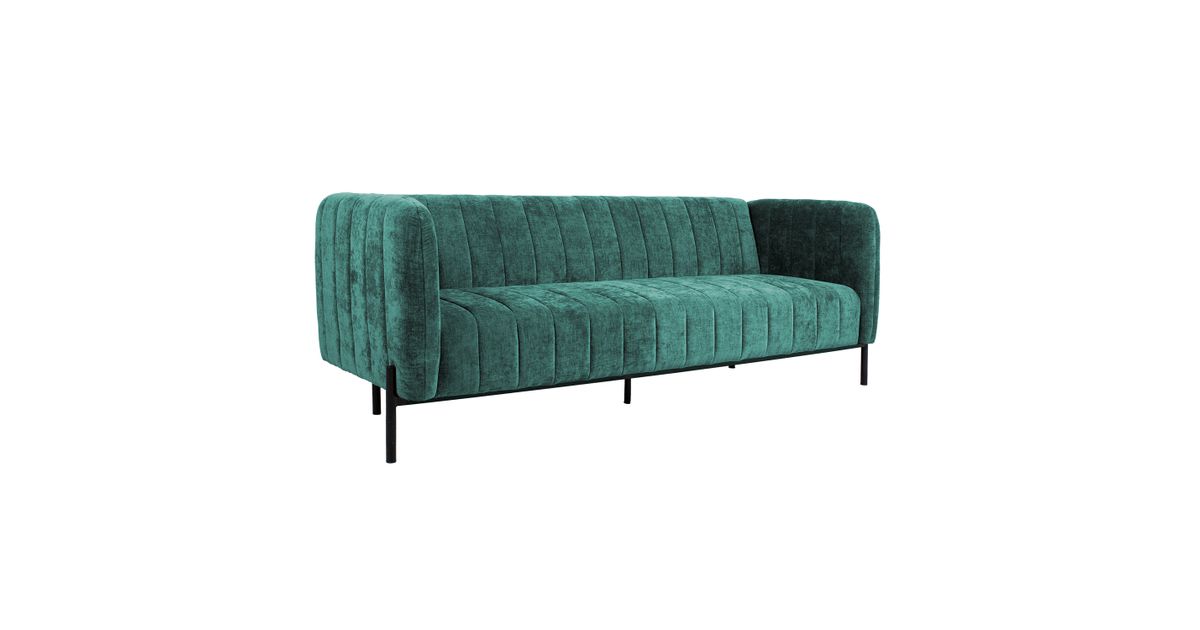 Sofa bed TAMIKA 3-seater, green. The fold-out sofa with a click-clack mechanism is a good solution for creating additional sleeping space. The sofa is covered with polyester fabric, and the frame is made of solid wood. The seat base is supported by zig-zag springs and webbing. The padding is made of polyurethane foam with a density of 23kg/m³. Before placing the backrest in a horizontal position, open the zipper pockets on the back of the backrest and pull out the metal support legs. The overall dimensions of the sofa are 217x84xH80cm. The dimensions of the sleeping area when opened are 187x112x47cm. The sofa has black metal legs.