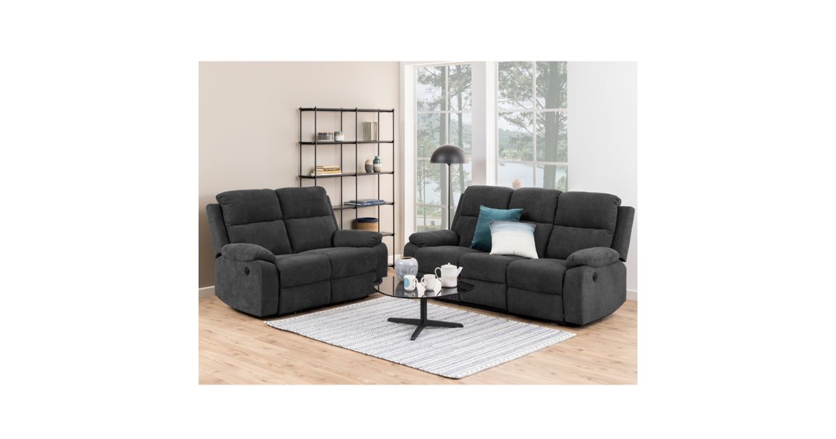 Sofa 3-seater, recliner elecric MORA, 196.5x95xH98cm. Fabric: Enjoy fabric dark grey 24, electric function, C plug. Base: powder coated, matt black. Seating height 49cm. It is soft, it is inviting, and it can be adjusted to fit your favourite position for optimal relaxation. Just use the electric function to adjust the recliner to your needs.