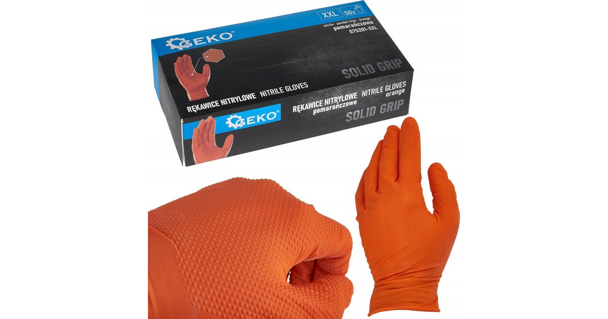 Solid grip nitrile gloves 50 pcs XXL orange (10) - Gloves - Safety at work - Tools and accessories - MT Shop