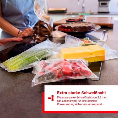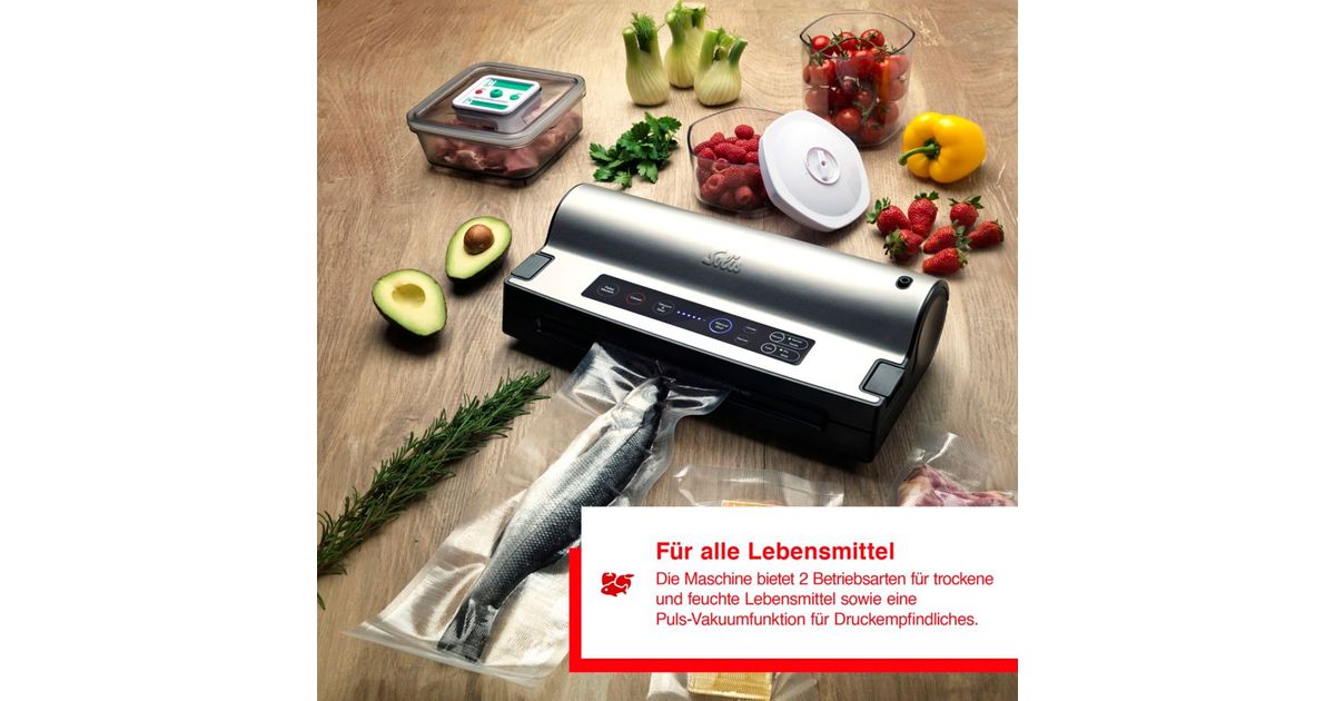With the fully equipped Solis Vac Prestige vacuum machine, you can keep food fresh up to 8 times longer. The appliance offers functions such as marinating and sous-vide cooking of food. It is suitable for all types of food and has a film cutter.