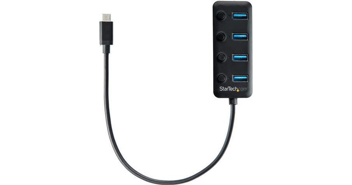 StarTech.com 4-Port USB-C Hub - 4x USB-A with Individual On/Off Switches, USB 3.2 Gen 1 (3.1 Gen 1) Type-C, USB 3.2 Gen 1 (3.1 Gen 1) Type-A, 5000 Mbit/s, Black, Plastic, Power