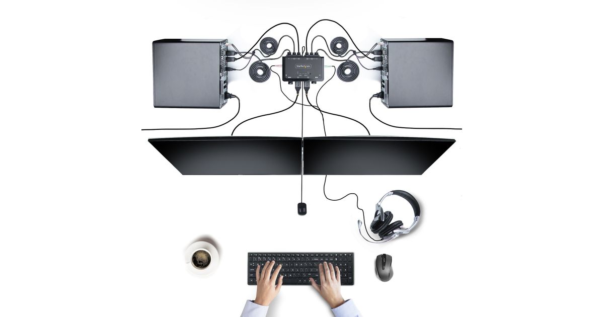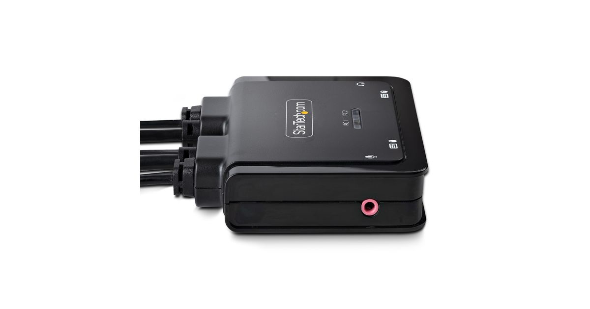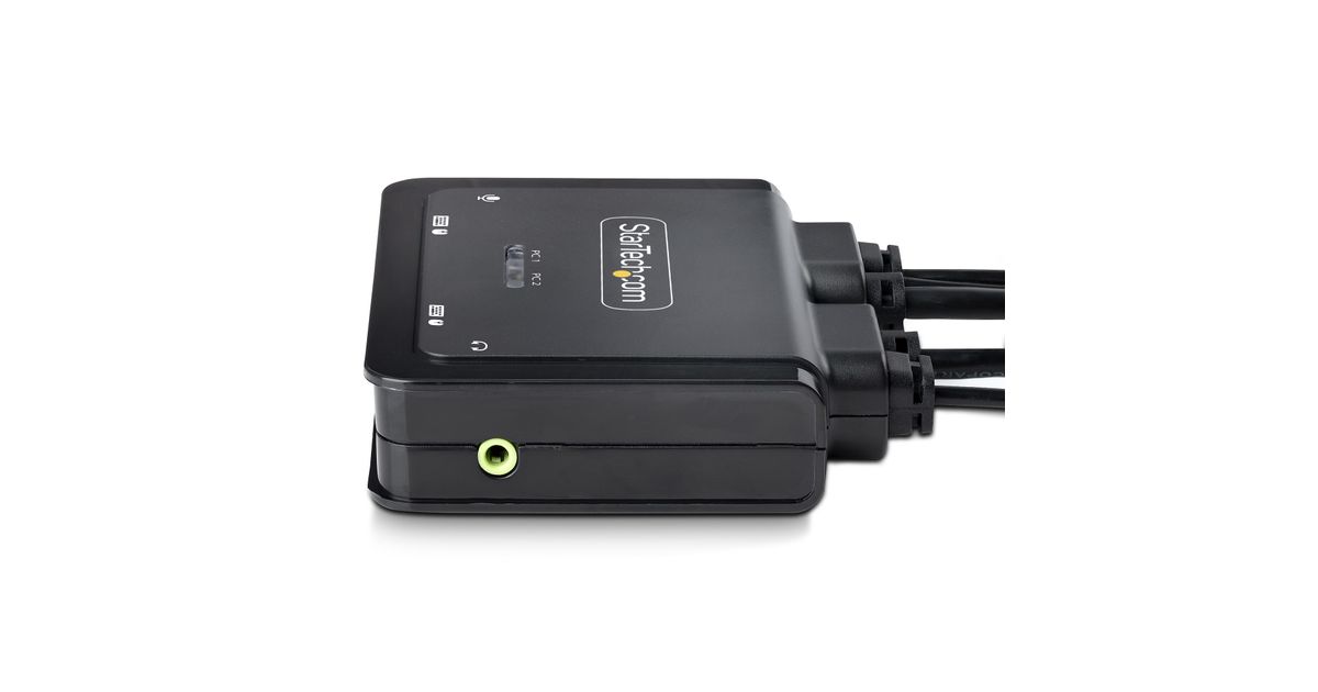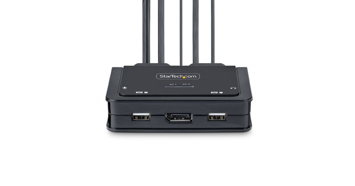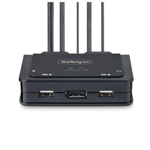 Share a mouse, keyboard, and a 4K 60Hz DisplayPort display between a USB-A computer and a USB-C DP Alt-mode computer, using this KVM Switch with built-in cablesThis Hybrid KVM Switch enables users to switch between a USB Type-A and DisplayPort-enabled desktop and a USB Type-C (DP Alt-Mode) enabled laptop, to share a keyboard, mouse, audio input/output devices, and a single 4K 60Hz DisplayPort monitor.Hassle-Free SetupThe KVM switch is bus powered and features built-in DisplayPort, USB-A, USB-C, and 3.5mm Audio Input/Output cables. This ensures compatibility and performance between the KVM switch, monitors, and peripherals - without the need to select and purchase the cables required for those connections.CompatibilityThe 2-port KVM switch is compatible with all operating systems, including Windows, macOS, ChromeOS, and Linux. The KVM works with all hardware platforms including Intel, AMD, and Apple M1/M2. The USB-C host port works with USB-C, USB4, Thunderbolt 3, and Thunderbolt 4 laptops. If the desktop does not have a 4-position 3.5mm port the included 3.5mm Headset Adapter ensures compatibility out of the box.Intuitive ControlThe KVM switch offers two options to switch between hosts - a remote push button or hotkey commands, using the downloadable software. The remote push button includes a 1.5m cable for optimal placement in the setup. Independent audio switching can be achieved through the software, utilizing keyboard shortcuts (i.e., hotkeys), ensuring uninterrupted audio when switching between host devices.Enhance Productivity and Device Management with the StarTech.com Connectivity Tools ApplicationDeveloped to improve performance and security, StarTech.com Connectivity Tools is the only software suite on the market that works with a wide range of IT connectivity accessories. The software suite includes:• Advanced Windows Layout Utility: Setup and save custom windows layouts.• MAC Address Pass-Through Utility: Improve network security.• USB Event Monitoring Utility: Track and log connected USB devices.• Wi-Fi Auto Switch Utility: Enable users to quickly access faster network speeds via wired LAN.For more information and to download the StarTech.com Connectivity Tools application, please visit: www.startech.com/connectivity-toolsThe StarTech.com Advantage