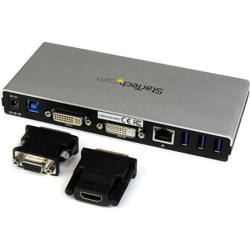 - Dock your USB 3.0 equipped Mac or Windows laptop with support for several dual monitor configurations using the included video adapters