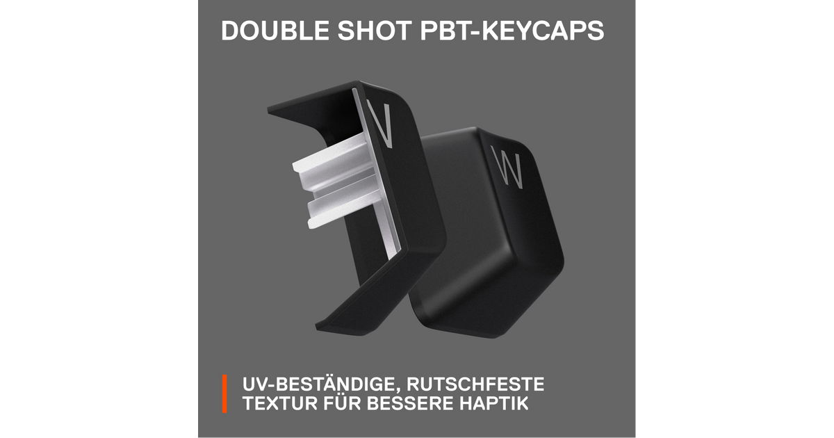 Our fadeproof PBT keycaps are engineered with a unique texture for enhanced keystroke feel and better typing accuracy.