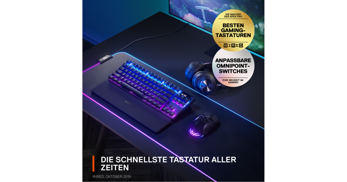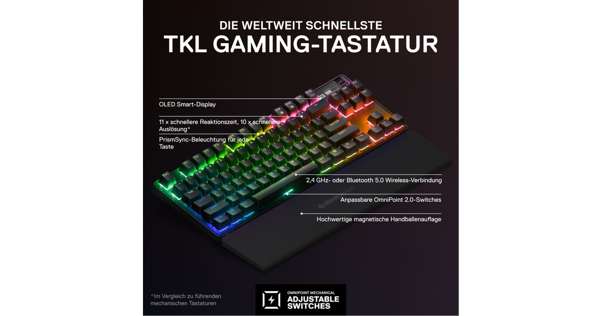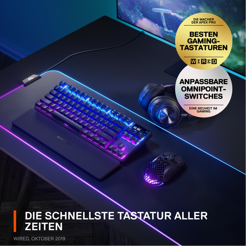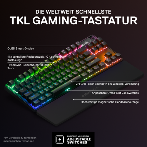 Steelseries Apex Pro TKL, Tenkeyless (80 - 87%), USB + RF Wireless + Bluetooth, Mechanical, QWERTZ, RGB LED, Black