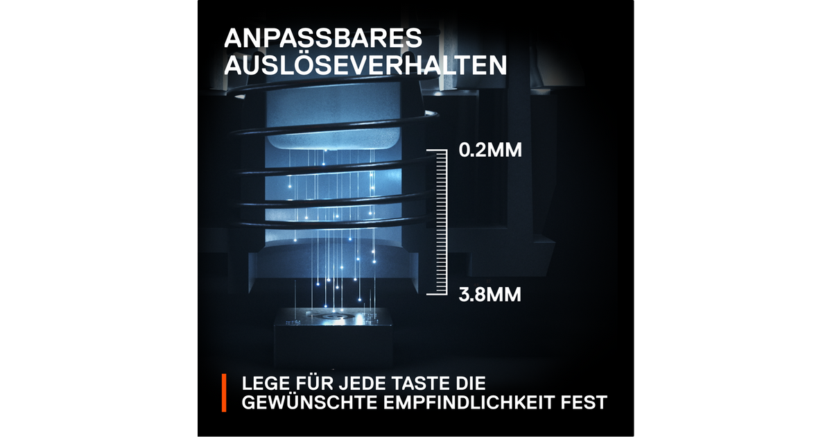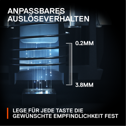 Absolute precision and unmatched customization are at your fingertips. Tune the registration distance of your keystrokes to the nearest 0.1mm. Whether you prefer the feather-light touch of 0.2mm, or a firm press at 3.8mm, the choice is yours.